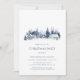 Corporate Christmas Party winter village landscape blue white Invitation. A Corporate Christmas Party Invitation in a classic style featuring monochrome winter landscape in navy blue and white colours. Stylish and elegant design.