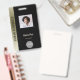 A classy, black and gold business design that is fully customisable, front and back. Professional, elegant, stylish, it features an art deco pattern of rectangles layered (digitally) with gold. Personalise this custom employee ID name badge with a photo, scan bar code and the business logo. For: the real estate management industry, law, finance, accounting, corporate. Available with lanyard, metal clip or with retractable. No minimum order.