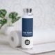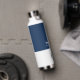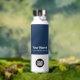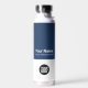 Easily personalise this Custom Employee Name water bottle with business logo. A simple business design in navy blue and white colours fully customisable in front and back sizes, sans-serif basic and modern fonts and a professional and clear look. Any colour, any font. No minimum order.