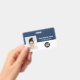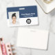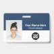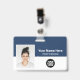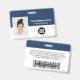Easily personalise this Custom Employee Name Badge with Photo, Scan Bar Code and business company logo, featuring persons name, occupation, optional identity bar code, with metal clip included. A branded badge useful to identify staff, visitors or guests, docror, nurse and medical professions. A simple business design with large photo in navy blue and white fully customisable in front and back sizes, in any colour background, sans-serif basic and modern fonts and a professional and clear look. An useful tool for corporate events, reunions, renews and celebrations. Create more corporate photo badge identification card in different colours for any category you need to identify: staff, visitors or guests. Avaiable with or without lanyard, metal clip or with retractable. No minimum order.