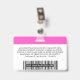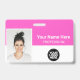 Easily personalise this Custom Employee Name Badge with Photo, Scan Bar Code and business company logo, featuring persons name, occupation, optional identity bar code, with metal clip included. A branded badge useful to identify staff, visitors or guests, docror, nurse and medical professions. A simple business design with large photo in cute neon pink and white fully customisable in front and back sizes, in any colour background, sans-serif basic and modern fonts and a professional and clear look. An useful tool for corporate events, reunions, renews and celebrations. Create more corporate photo badge identification card in different colours for any category you need to identify: staff, visitors or guests. Avaiable with or without lanyard, metal clip or with retractable. No minimum order.