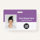 Easily personalise this Custom Employee Name Badge with Photo, Scan Bar Code and business company logo, featuring persons name, occupation, optional identity bar code, with metal clip included. A branded badge useful to identify staff, visitors or guests, docror, nurse and medical professions. A simple business design with large photo in lavender purple and white fully customisable in front and back sizes, in any colour background, sans-serif basic and modern fonts and a professional and clear look. An useful tool for corporate events, reunions, renews and celebrations. Create more corporate photo badge identification card in different colours for any category you need to identify: staff, visitors or guests. Avaiable with or without lanyard, metal clip or with retractable. No minimum order.