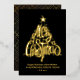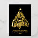 Elegant Festive Gold Script Merry Christmas Pine Tree with a Star and Gold Confetti on Black Real Foil Business Corporate Holiday Card with Company Logo on the back. All the texts are pre-arranged for you to personalise easily and quickly with your own details. Happy Holidays! (Cards with Company Photo are also available. If you need help on modification, pls contact us via Zazzle chat prior to order purchase)
