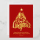 Elegant Festive Gold Script Merry Christmas Pine Tree with a Star and Gold Confetti on Red Real Foil Business Corporate Holiday Card with Company Logo on the back. All the texts are pre-arranged for you to personalise easily and quickly with your own details. Happy Holidays! (Cards with Company Photo are also available. If you need help on modification, pls contact us via Zazzle chat prior to order purchase)