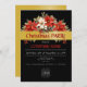 Annual Corporate Christmas Party Invitation. Red and white Poinsettia decorations on a golden shiny ribbon with Christmas Party on a black background.