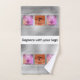 This towel is also available in our store to fit square or circular logos and with solid colour backgrounds.