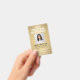 **Please note that the background is printed to look metallic, but the product is not made of metal.** Represent your business in style by supplying staff with with modern and professional identification badges. The Logo, photo, bar code and all wording on this template are all simple to customise. The black and gold design features a faux metallic brushed background with an elegant curved arc, your company logo, one square picture, employee name and title, and UPC / barcode on back. It can provide organisation and security for company staff, while presenting the corporate branding with a stylish classic appearance. Please note that the gold is printed colour, not metallic foil.