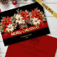Add foil to your Holiday card for an elegant look. This Merry Christmas double-sided card with red and white Poinsettias on a black background and Merry Christmas in foil is classic, minimal and right for the Holiday season.