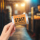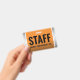 A modern design featuring black, all capital sans serif lettering set on orange, worn steel, and white-to-black gradient backgrounds adds professionalism and ease of readability to this staff pass. Customise with business, company, division, workplace, and/or department name. Font type and colours can be modified as desired. Reverse shows identical design.