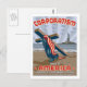 Vintage-propaganda-style Anti-Corporatism (aka: fascism) design, with the devil wrapped in the flag and carrying a cross, arriving on the shores of America. Posters, t-shirts, gifts.
