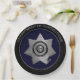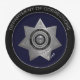 Correctional Officer Badge (Paper Party Plates)-is a graphic art design. The badge is created in silver (or gold) and black with a small touch of blue. A decorative seven (7) point silver/gold star forms the badge. Text curving the top of the badge reads: DEPARTMENT OF CORRECTIONS. Text curving the bottom reads: CORRECTIONAL OFFICER. These words sit on a solid blue/black ring. More silver/gold decorates the badge throughout. An eagle emblem with silver/gold stars sits in the centre. Smaller text in the centre reads: Seal of the State. The badge is not state specific. Under the badge is a solid blue centre. A black outer rim with silver/gold text curving around the top that reads: DEPARTMENT OF CORRECTIONS. This badge design comes in silver or gold with assorted background styles. The design is also available with a photo insert in my other zazzle stores.
