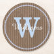 Stylish pulp board paper coasters done in a brown corrugated cardboard look, with graphics of a light blue dotted circle around the outside edge. Personalise the large light blue one letter monogram and white script text to suit your needs. Great for anytime use and makes a nice gift idea.