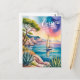 Experience the serene beauty of Corsica’s coastline with this watercolor postcard featuring a graceful sailing boat gliding over calm turquoise waters. Soft brushstrokes and gentle hues capture the island’s rugged cliffs and peaceful seaside atmosphere, perfect for lovers of nautical scenes and Mediterranean charm.
