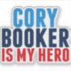 Cory Booker is My Hero laptop sticker. This democratic party member made history by breaking the record by speaking for over 25 hours. It was the longest speech in history and an impressive move against Trump.
