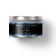 A label for cosmetics and/or soap products with a black background and a faux blue foil border. Customise it with your business and product information.