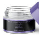 A label for cosmetics and/or soap products with a black background and a faux purple foil border. Customise it with your business and product information.