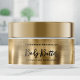 A cosmetics jar label featuring a faux brushed gold foil background. This label measures 1 inch by 7.25 inches (25 mm by 184 mm) and is suitable for jars with a diameter of 2.31 inches (59 mm) or more.