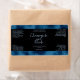 A label for cosmetics and/or soap products with a black background and a faux blue foil border. This label contains space for your product name, business name, product weight, ingredients, instructions, social media, and business address. This label measures 3.75 inches by 2 inches (95 mm by 51 mm) and is suitable for bottles with a diameter of 1.2 inches (31 mm) or more such as 4 oz (120 ml) bullet, cylinder, and boston round bottles. It can also be used for cosmetic jars and other types of cosmetics packaging.