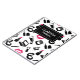 Chic notebook with a pattern in pink, black, and white of cosmetic products, and your name.