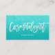 An elegant modern, stylish makeup artist cosmetologist business card with elegant script hand lettering style typography in white on a faux aqua glitter and pastel aqua trendy and elegant background. If you need any customisation, don't hesitate in contacting me