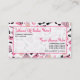 A cosmetologist / salon business card featuring a background design consisting of illustrations of purses, lipstick, perfume bottles, pink diamonds, and cat eye sunglasses. Personalise the front with your business contact information. Use the back to write appointment information.