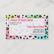 A cosmetologist / salon business card featuring a neon leopard print background. Personalise the front with your business contact information. Use the back to write appointment information.