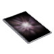 This cool background artwork features the dark inky blackness of space. Clouds and streaks of light and colours: pinks, blues, violets emanate out from a central source with grainy textures. An abstract atristic representation of a supernova, this design is perfect for the fan of outer space and science fiction.