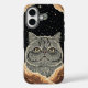 Peeking through an asteroid window, a grumpy yet loveable cosmic cat gazes into the vastness of space. This fun, retro-style illustration combines a love for felines with the adventure of space travel, perfect for any cat lover with their head in the stars.