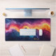 And abstract desk mat design inspired by cosmos offering colourful space clouds, and glittering stars You can remove or customise the name on the design. This is a great design for sci-fi lovers, space lovers, and abstract art lovers.
