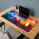And abstract desk mat design inspired by cosmos offering colourful space clouds, and glittering stars You can remove or customise the name on the design. This is a great design for sci-fi lovers, space lovers, and abstract art lovers.