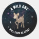 Cosmic Deer Wild One Pink Girl Baby Shower Classic Round Sticker