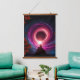 "Cosmic Descent — Man Staring Into a Neon Galactic Hanging Tapestry
