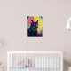 A striking black cat with glowing yellow eyes stands out in this mesmerising neon art piece. Surrounded by a celestial display of stars and orbs, this poster blends mystique and retro space-age charm.