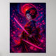 Cosmic Geisha Samurai with Glowing Swords Fantasy Poster