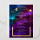 Cosmic Purple Teal Gold Silver Sun Moon Astronomy Space Foil Foil Wedding Invitations features sun, moon and stars with a gold frame on a colourful purple, teal and blue cosmic background. Inside is your custom wedding invitation information. Designed for you by ©Evco Studio www.zazzle.com/store/evcostudio