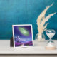 Cosmic Green Galaxy Over Purple Mountain Landscape Plaque