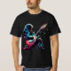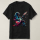 This powerful graphic design captures a guitarist mid-shred, with their body and guitar exploding into a vibrant nebula. The image features a blend of bright blues, reds, and purples against a dark background, creating a stunning cosmic effect. It's the perfect t-shirt for guitar players, rock music fans, and anyone who feels a universal connection to their music.