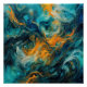 Cosmic Ocean Square – Colourful Abstract. Flowing, untamed, and endlessly shifting, this piece resembles an ocean’s depths mingling with cosmic light. Like a galactic volcanic storm unfolding in real-time, this artwork captures a clash of bright orange and blue colours in cosmic currents. The piece radiates fluid motion and elemental energy, blurring the lines between ocean, sky, and space in a symphony of turquoise and flame where the eye is lost in imaginary visions of swirling currents, molten lava, surreal shapes of faces and eyes all lost in a complex spectacle.