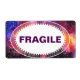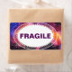 The backdrop of this eye-catching moving box label is a watercolor image of a cosmic night sky with bright blue, orange and purple clouds swirling amid clusters of twinkling stars. An oval white text frame with lace edges contains the word FRAGILE in bold text. Coordinates with additional moving box labels for CONTENTS and THIS SIDE UP, as well as our Cosmic Outer Space address change postcard, postage and labels.