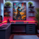 A mystical panther warrior stands poised for battle, wielding a blazing katana infused with cosmic energy. Adorned in ornate samurai armour, this interstellar fighter exudes strength and wisdom, ready to defend the celestial realm. The fiery battlefield contrasts against a deep-space sky with twin red moons, creating an epic fusion of Japanese warrior tradition and sci-fi fantasy. A stunning depiction of power, honour, and intergalactic mysticism.
