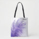 The airy feathers are purple and various shades of lavender. The tote bag strap is BLACK.