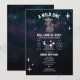 A baby shower invitation featuring an illustration of a baby racoon surrounded by stars. Racoon has pink star sunglasses on face and stars around ears. Personalise the text. Background is watercolor cosmic inspired design.