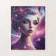 Step into a realm where stars whisper secrets and magic shimmers. This captivating jigsaw puzzle invites you to unravel the ethereal beauty of a cosmic siren, her eyes holding ancient mysteries and her luminous hair swirling with the nebula's dance. With vibrant purples, blues, and pinks, this piece is a dreamlike journey for puzzle enthusiasts and lovers of mystical artistry.