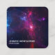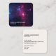 Modern business cards with a blue, pink and black fantasy image of cosmic space with stars and wispy Nebula.