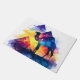 Beautiful watercolor camel under a starry night sky with pyramid silhouettes.
