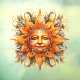 Cool window cling features AI generated digital art illustration of a cosmic sun face.