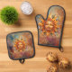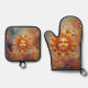 Cosmic Sun Face Digital Art Oven Mitt & Pot Holder Set