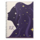 Add a personalised style to your stationery with a custom-made notebook journal. Beautiful Cosmic Universe Lady Purple with Gold Stars Notebook Journal. Personalise with initials or name. Great gift idea.