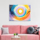 This vibrant abstract design captures the essence of a cosmic dance, featuring a swirling vortex of colours centred around a radiant sun-like core. Layers of blue, purple, orange, and yellow blend seamlessly, creating a sense of depth and motion. It evokes the feeling of being drawn into the heart of a celestial phenomenon, where the warmth of a star meets the cool expanse of space. For those who appreciate bold, contemporary designs with a celestial theme.