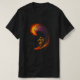 An astronaut in a classic gold spacesuit surfs a vibrant, fiery cosmic wave through the depths of space. The wave, a swirling nebula of oranges, reds, and purples, illuminates the dark, star-filled background. This striking image blends the thrill of surfing with the awe of space exploration, perfect for anyone who dreams of cosmic adventures and pushing boundaries.